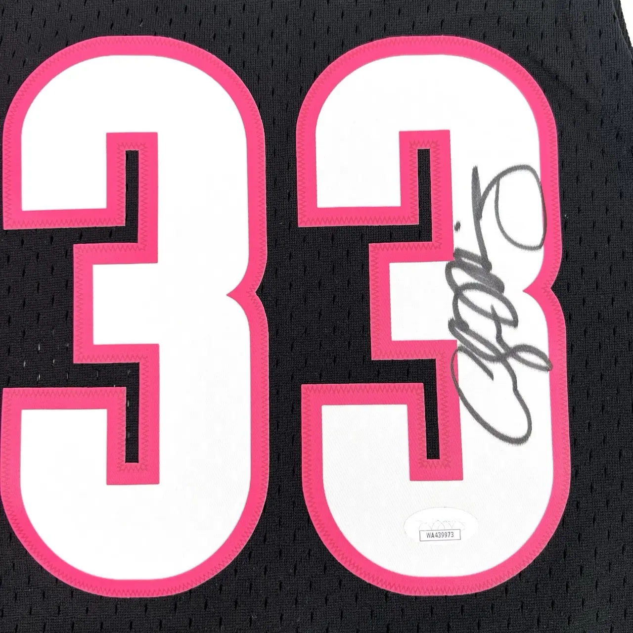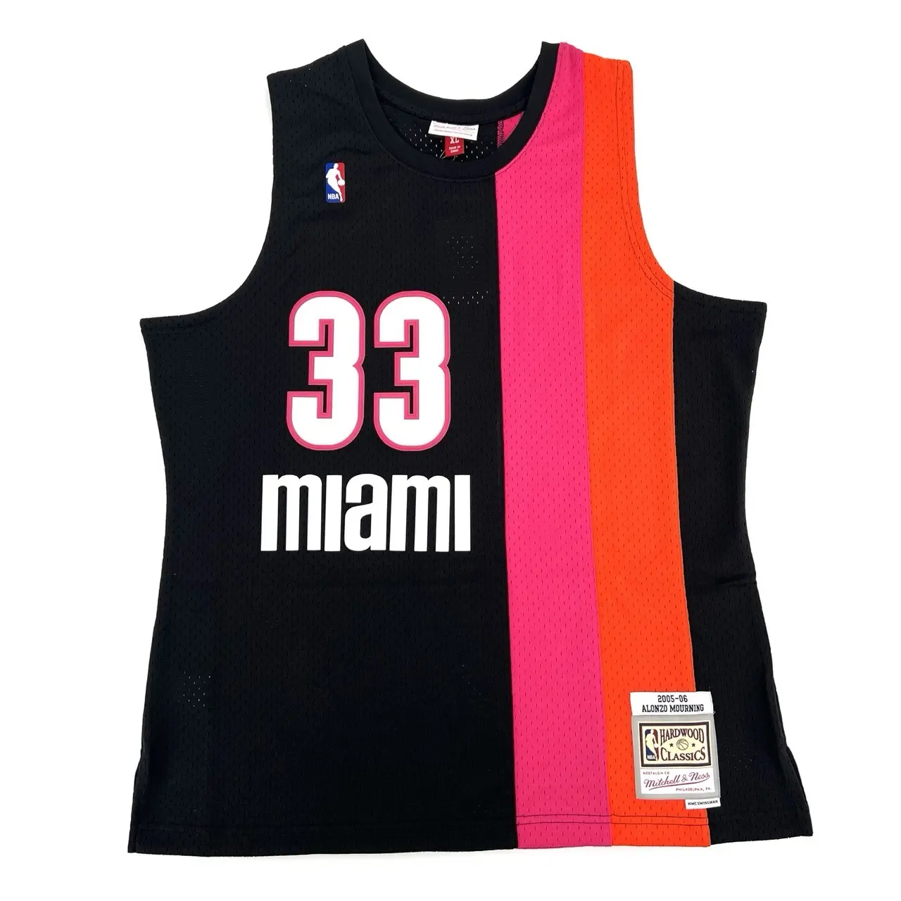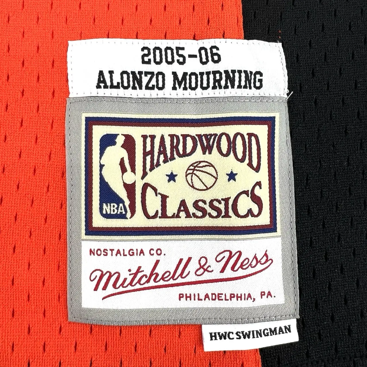 Maillot NBA Mitchell&Ness Swingman noir Miami Heat signé par la légende Alonzo MOURNING. Certificat d’authenticité de la signature délivré par JSA.
