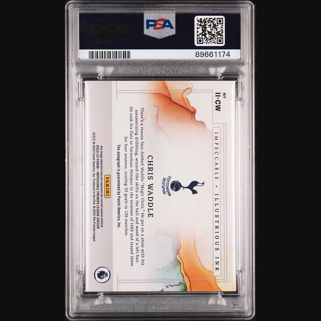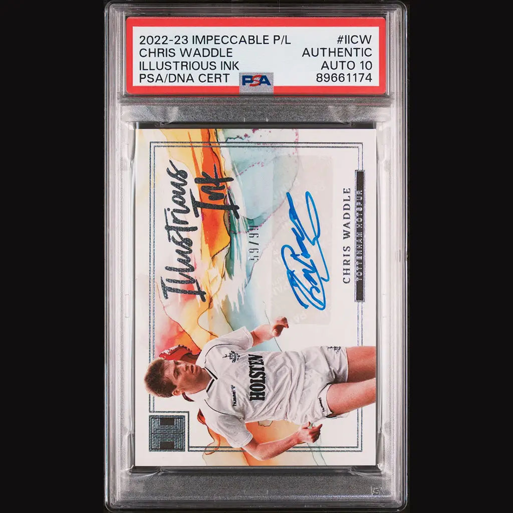 Carte Panini Impeccable 22/23 Illustrious Ink numérotée 59/99 et signée par Chris WADDLE. Encapsulée et gradée PSA 10.