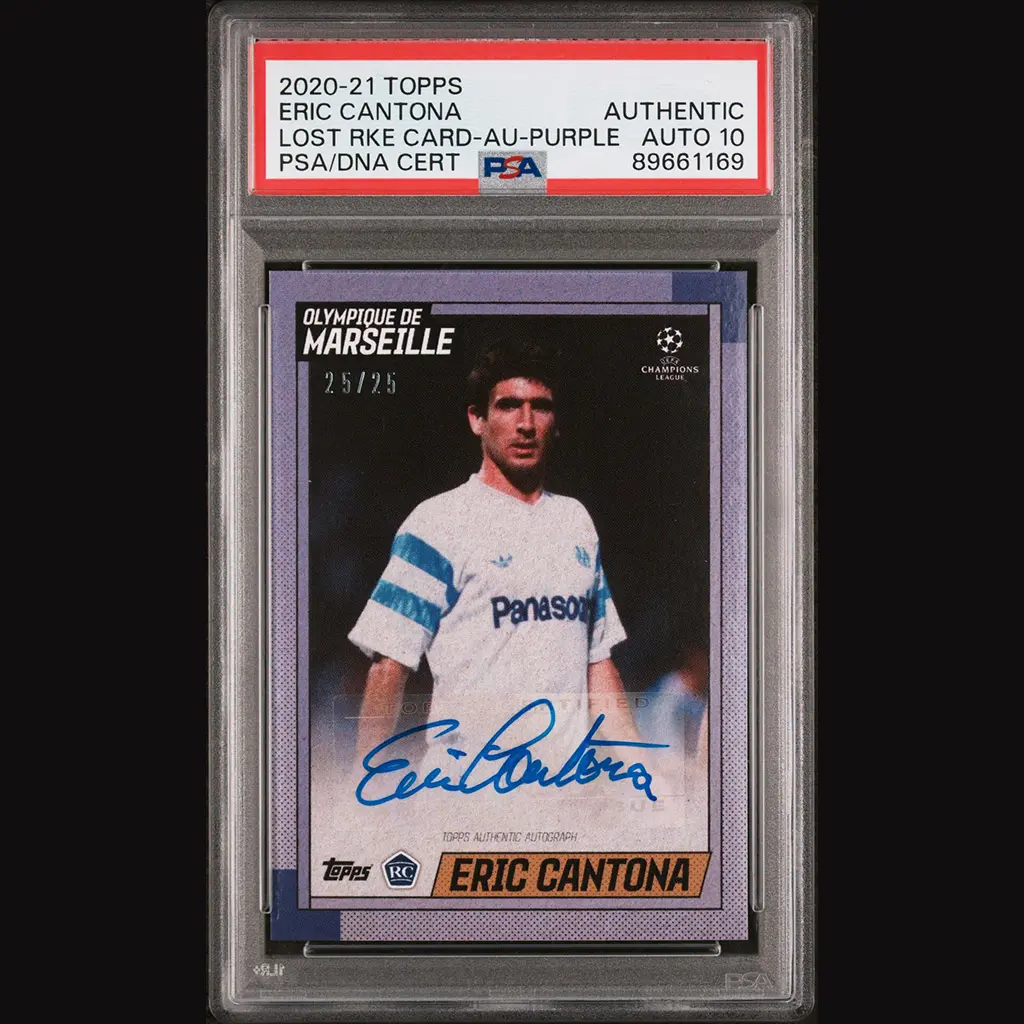 Carte Topps RC The Lost Rookie 20/21 numérotée #25/25 et signée par la légende Eric CANTONA. Encapsulée et gradée PSA 10.