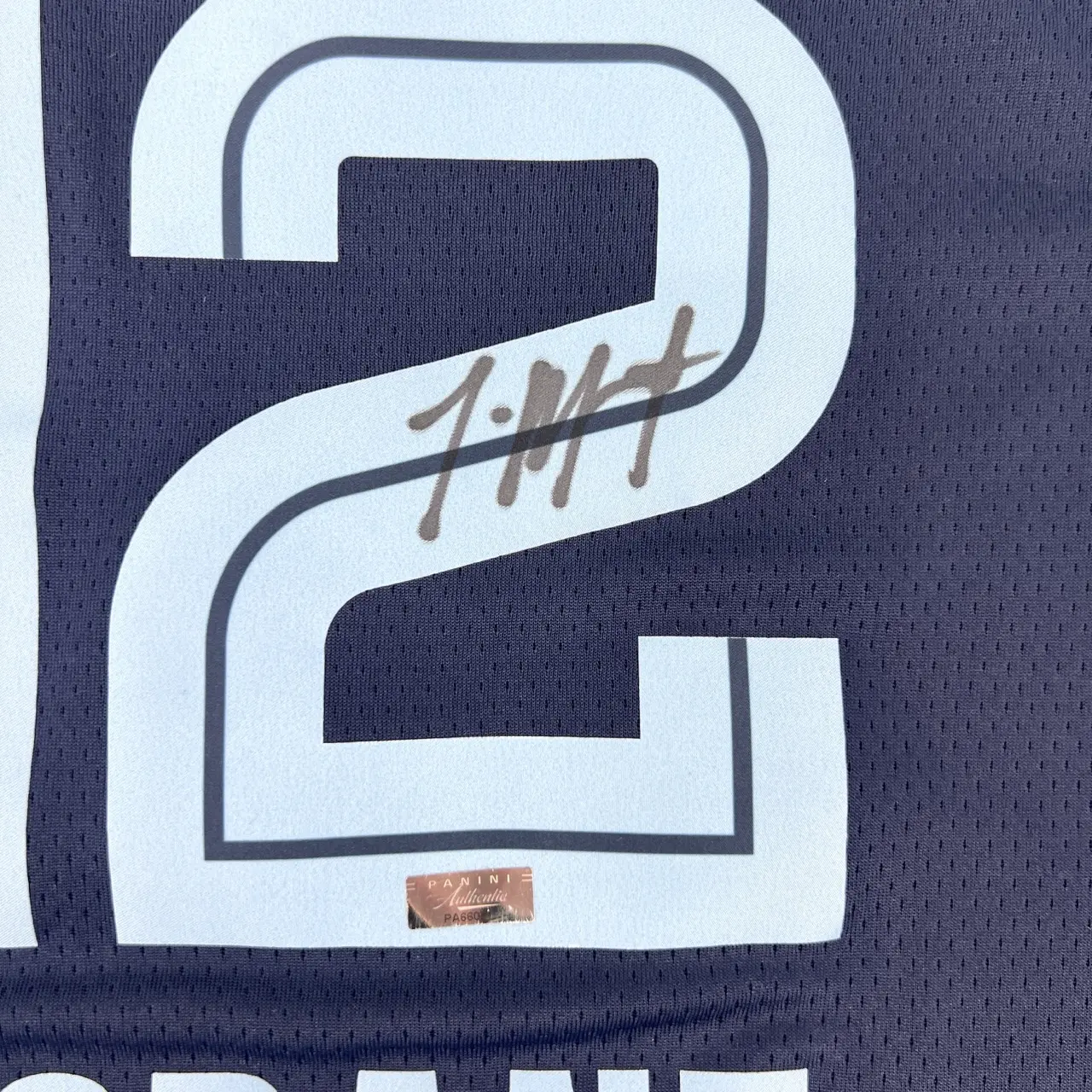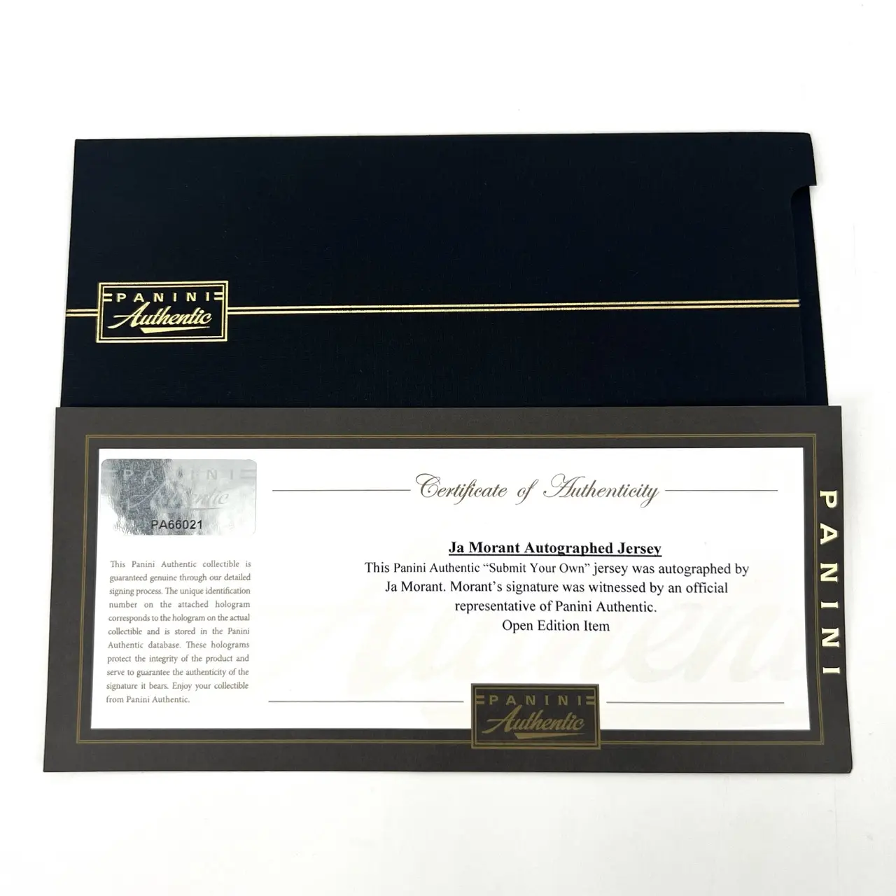 Maillot NBA Nike Swingman bleu Memphis Grizzlies signé par l’actuel meneur de jeu, Ja’ MORANT. Certificat d’authenticité de la signature délivré par Panini Authentics.
