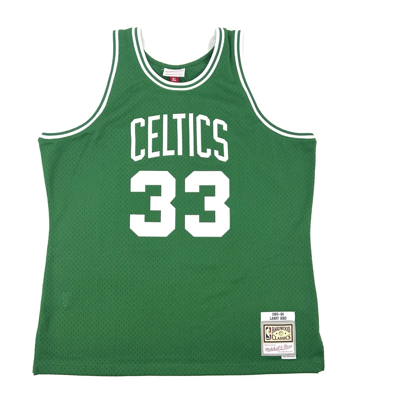 Maillot NBA Mitchell&Ness Swingman vert Boston Celtics signé par la légende Larry BIRD. Certificat d’authenticité de la signature délivré par Schwartz.