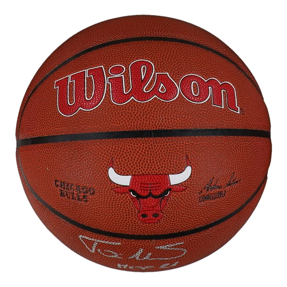 Ballon NBA Wilson logo Chicago Bulls, signé par la légende Toni KUCOC et avec inscription » HOF 21″. Certificat d’authenticité de la signature et inscription délivré par Schwartz.