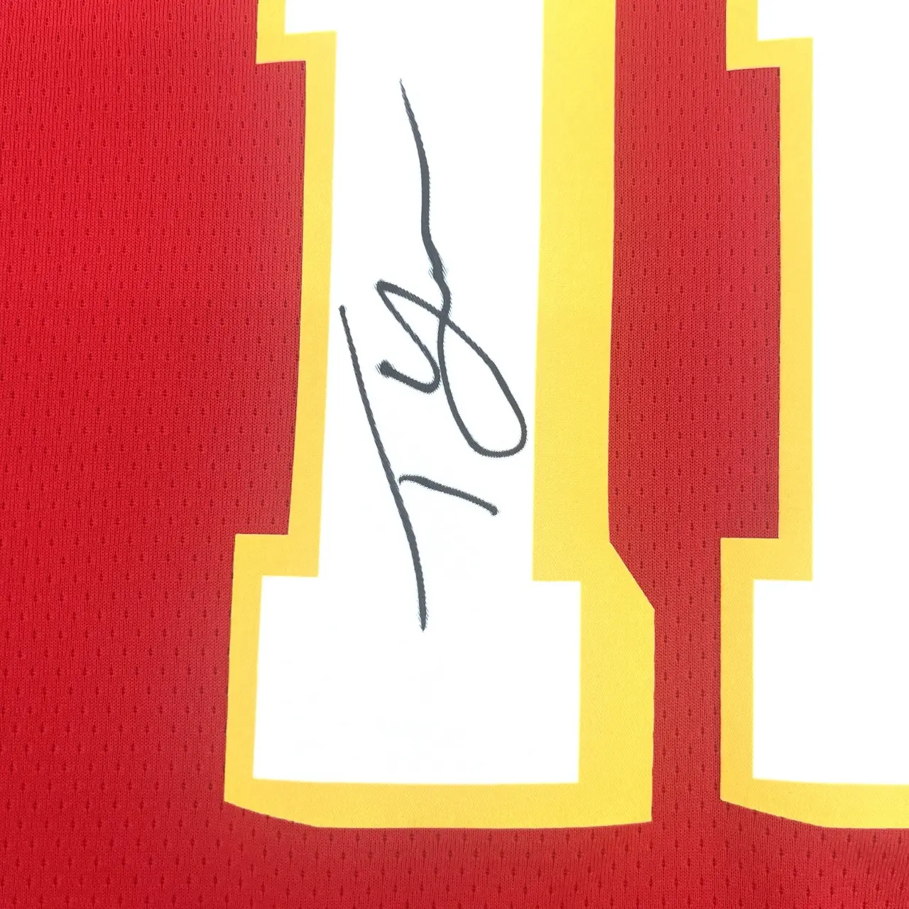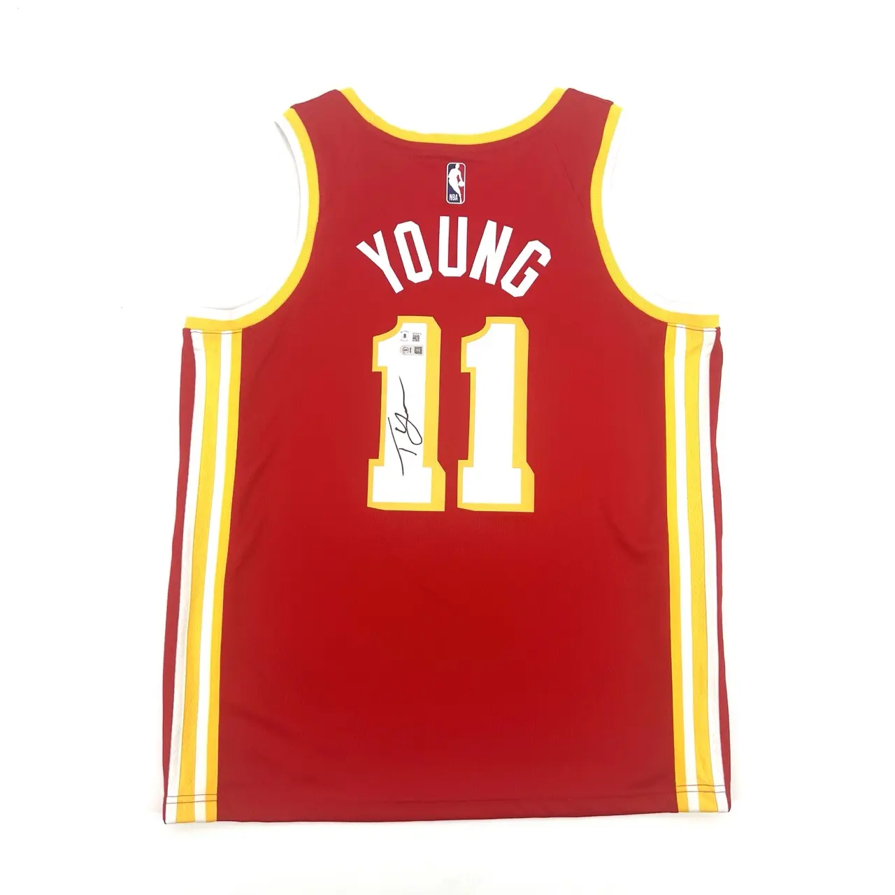 Maillot NBA Nike Swingman rouge signé par le joueur actuel des Hawks d’Atlanta, Trae YOUNG. Certificat d’authenticité de la signature délivré par la société Beckett.
