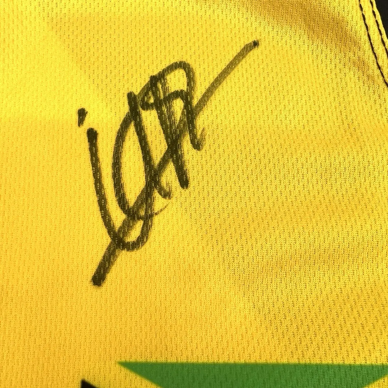 Maillot d’athlétisme Jamaïca des Jeux Olympiques 2016 de Rio signé par la légende et recordman actuel du 100m, 200m et 4x 100m, Usain BOLT. Certificat d’authenticité de la signature délivré par Beckett.
